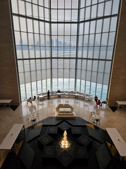 Next, I took an Uber to go to the the Museum of Islamic Art, another architectural masterpiece right on the water. Its huge windows frame the marina like a painting. The galleries were organized by time periods, with artifacts ranging from ceramics to textiles, and all signed in both Arabic and English. Again, the displays here were impeccable. I especially loved seeing the section on mosaics, featuring mosaics I recognized from my visit to the Great Mosque Cathedral of Córdoba, in Spain.
